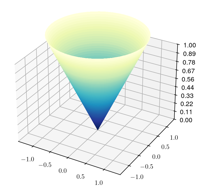 Consider the square case: \(z = x^2\)