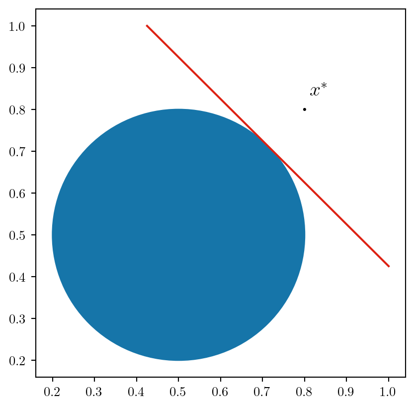 A -- "x ≤ 0" --> B((c* = 0.6, <br> z*=2.2))